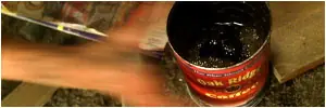 Budd utiliza una jarra de café Oak Ridge para escupir en el interior el tabaco de mascar.