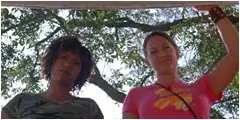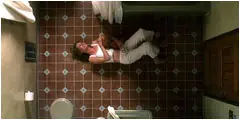 La cámara sigue a continuación, con los pies Arlene que meando va corriendo en busca de un baño.