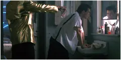 Vincent y Jules se laven las manos en el baño de Jimmy.