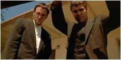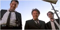 Mr. Blonde, White y su colega Pink muestran al policia rehén.
