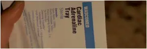 Wascomed (homenaje al diseñador de producción David Wasco que ha trabajado en casi todos las pelis de Tarantino) es la marca de la adrenalina que se utiliza para salvarle
