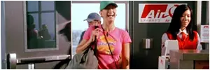 En la escena eliminada en el aeropuerto se ve el logo y una azafata de la misma empresa.