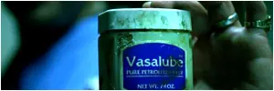 El enfermero Buck muestra lo que ha sido descrito por el propio Tarantino como "el tarro más repugnante de vaselina en la historia del cine."