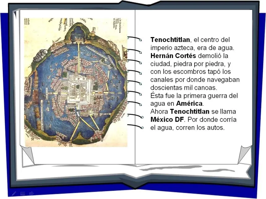 Ahora Tenochtitlan se llama México DF. Por donde corría el agua, corren los autos.