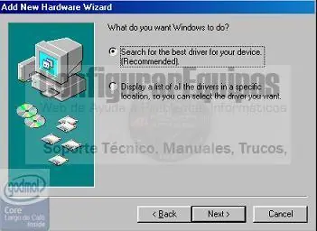 Seleccionamos la opción “Buscar el mejor controlador para el dispositivo” (Search for the best driver for your device) y pulsamos en el botón “Siguiente” (Next) y nos presenta otra pantalla