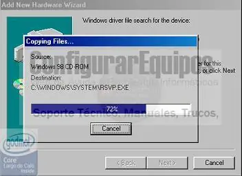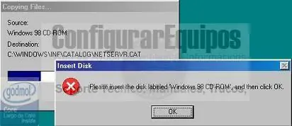 Introducimos el CD de instalación de Windows 98 para que copie los ficheros que necesite. Al finalizar la copia nos presenta la siguiente pantalla: