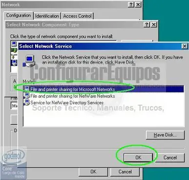 Elegimos el servicio “Compartir archivos e impresoras de Microsoft Windows” (File and printer sharing Microsoft Networks) y pulsamos en el botón “Aceptar” (OK) volviendo a la pantalla inicial donde ya vemos añadido nuestro servicio