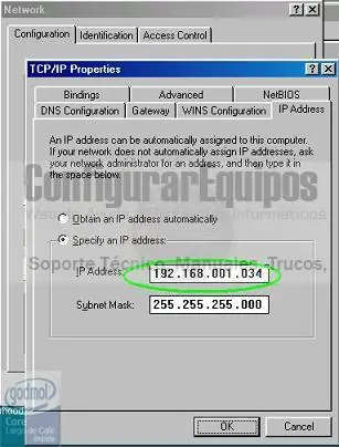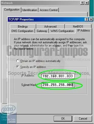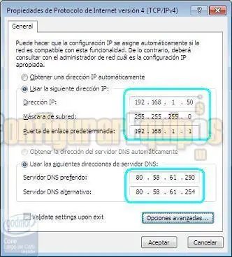 Es aquí donde pondremos nuestra dirección IP y la máscara de subred tal y como se ve en la figura.