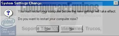 Windows nos avisa que para que los cambios tengan efecto hay que reiniciar el ordenador, por lo tanto pulsamos en el botón “Si” (Yes), para reiniciar.