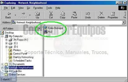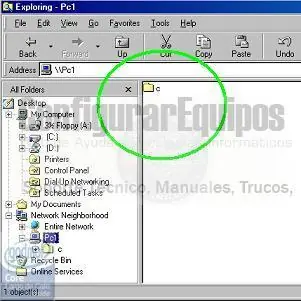 Vemos que, al igual que ocurría en el escritorio, también en el explorador hay una entrada como “Mis Sitios de Red” (Network Neighborhood) como vemos en la imagen. Si nos colocamos encima de esta nueva entrada vemos que ya podemos ver en los sitios red el PC1.