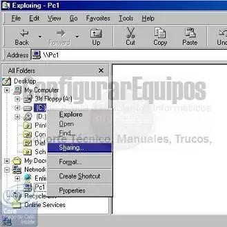 Para empezar vamos a compartir la unidad C: completa del PC1, para ello, pulsamos con el botón derecho del ratón sobre dicha unidad en la ventana del explorador de Windows como podemos ver en la imagen