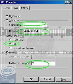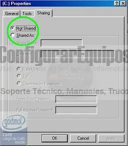 En ella vemos que no está compartida la unidad C: con lo que seleccionamos “Compartir Como...”(Shared As..) como vemos en la imagen