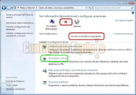 Una vez dentro, pulsamos sobre centro de Redes y recursos compartidos, y por último, Conectar a Red.