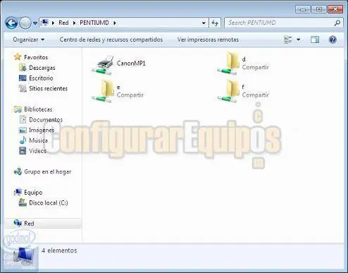 Nos situamos en el explorador de archivos del PC1 (si os fijáis en el PC1 la unidad D: es una unidad de CD mientras que en PC2 la unidad D: es otro disco duro) y observamos que no solo se ven los dos ordenadores en la red.
