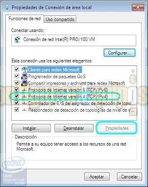 Ahora debemos asignar una dirección IP a nuestro adaptador de red, para eso, seleccionamos de la lista el Protocolo TCP/IP correspondiente a nuestro adaptador de red pulsamos en el botón “Propiedades” (Properties), para que nos aparezca otra nueva ventana