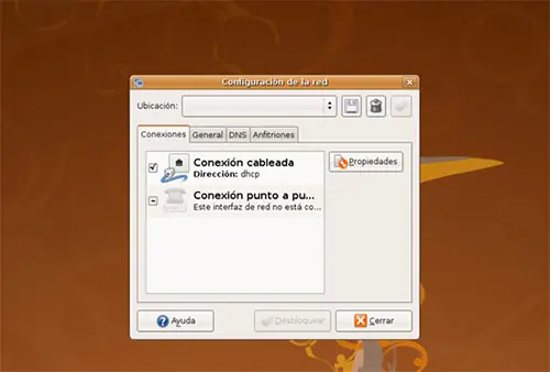 En esta pantalla es donde configuramos al IP dinámica o estática según sea el caso. Seleccionamos dentro de la pestaña conexiones la que se llama conexión cableada (si tenemos tarjeta inalámbrica aparecerá conexión inalámbrica también y si tenemos varias conexiones o tarjetas de red. Éstas también aparecerán en esta ventana).