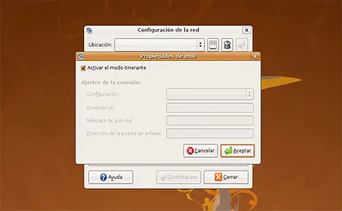 Desactivamos la opción que indica el modo itinerante para que se habiliten las cajas de texto de más abajo (la opción itinerante es para que Linux detecte automáticamente la configuración de red cuando conectamos un PC Linux a red).