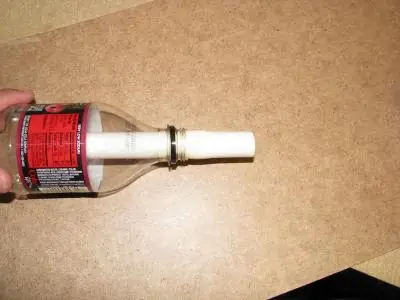 Mediante una pistola de calor, calentaremos el tubo de PVC que va a ir dentro de la botella de plástico que es nuestro calderín, y la ensancharemos.