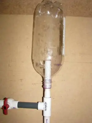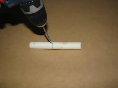 Además, a la parte del tubo que va a quedar dentro de la botella, le haremos unos agujeros con un taladro, para ayudar a drenar el agua de la base del depósito.