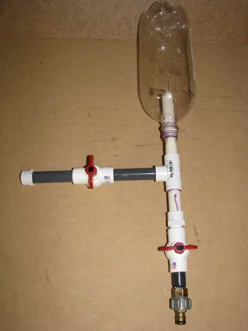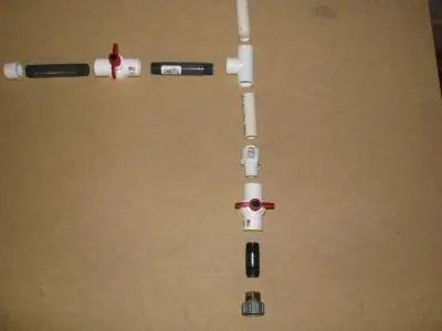 Como vemos todas las piezas son muy fáciles de conseguir, en alguna fontanería o un centro de bricolaje. Las uniremos con pegamento para PVC.