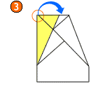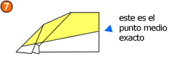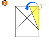 Doblar la esquina marcada hasta el pliegue de la diagonal, alineando el borde del papel con el pliegue.