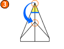Así es como debería haber quedado. Ahora, plegar la punta hacia abajo por la línea azul, haciendo coincidir las dos partes marcadas con círculos.