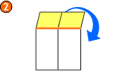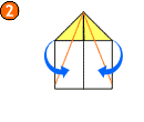 Doblá hacia adentro las esquinas superiores. Después, doblá por las líneas anaranjadas.