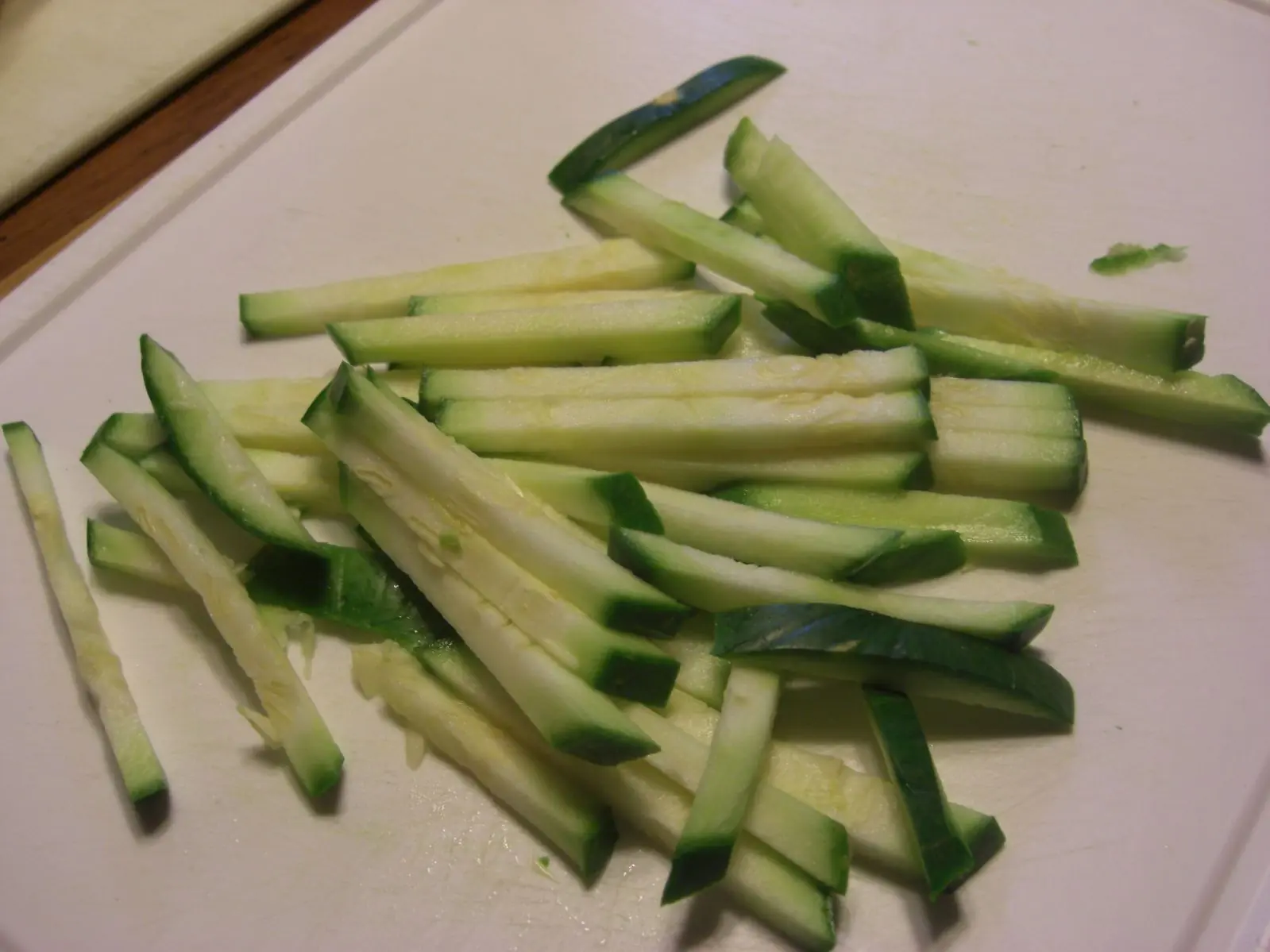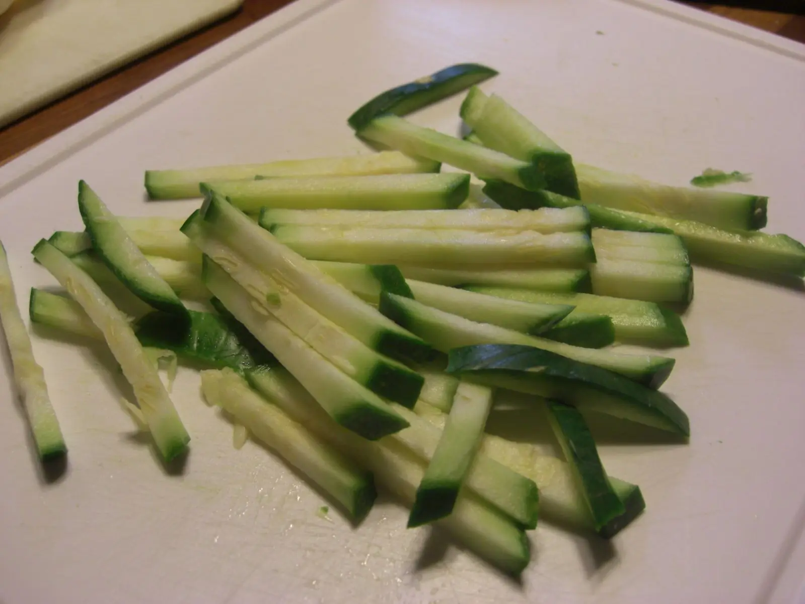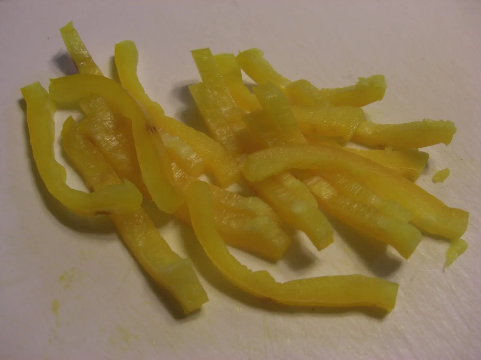 2) Ahora preparamos las verduras: La cebolla la cortamos finamente en laminas (en juliana), el zapallito lo cortamos en rodajas y despues lo cortamos en laminas y el morron lo cortamos a la mitad, le sacamos los nervios y las semis y cortamos en laminas. Reservamos para la coccion.