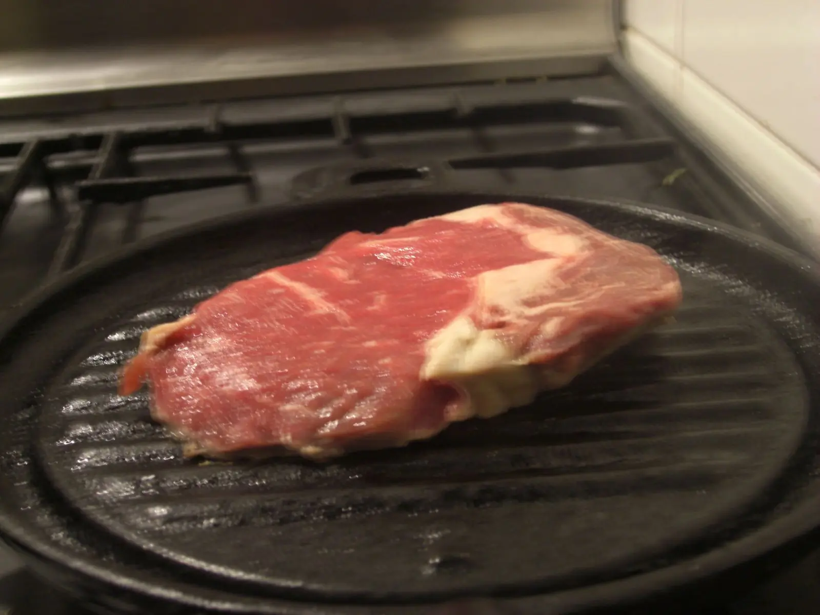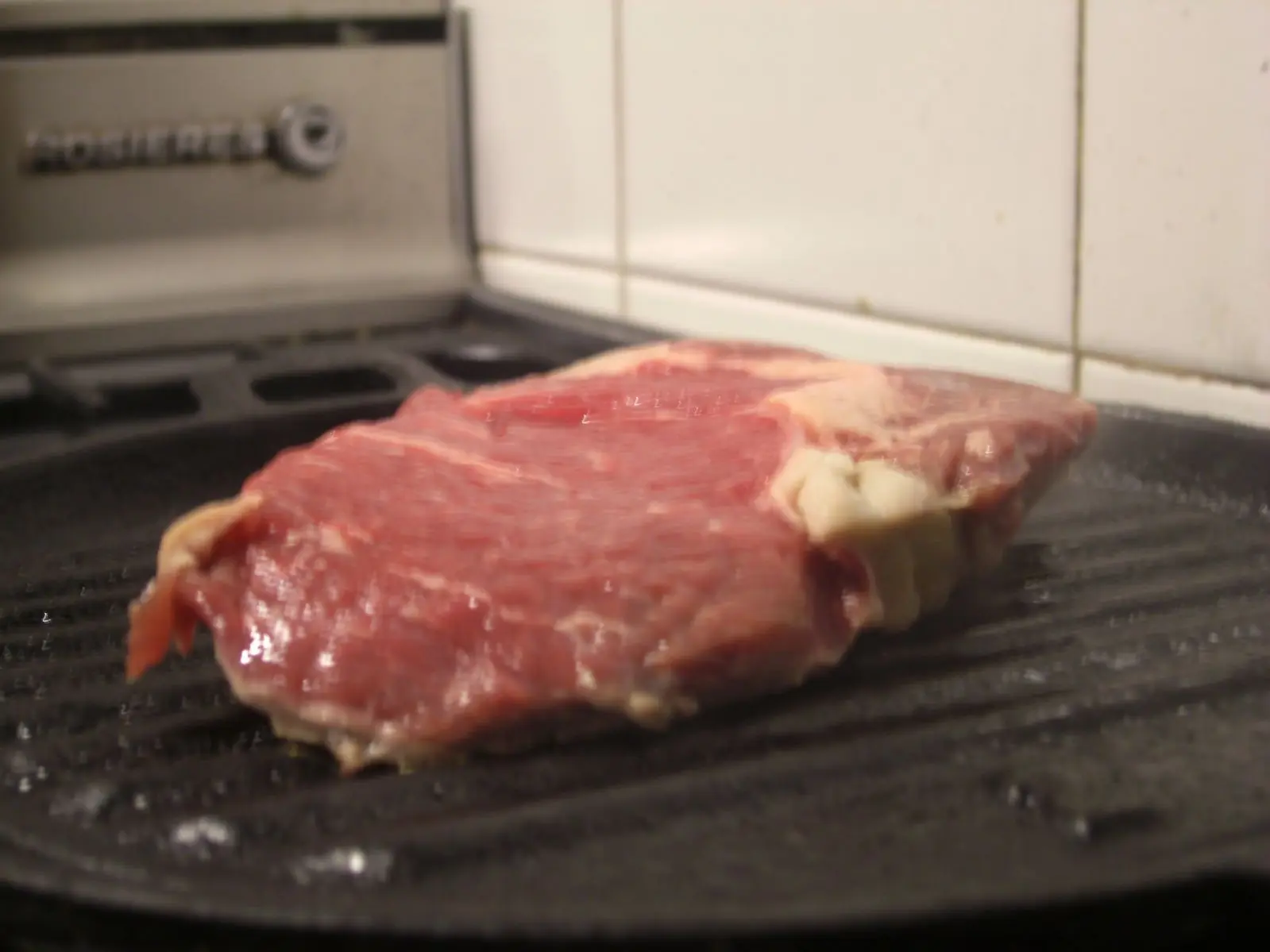 3) Calentamos la parrila y ponemos el bife ancho a cocinar. (Calculen que para que este a "punto" tarda 15 min (7 y 7) y "cocido" tarda 20 mins (10 y 10).