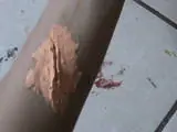 Y con una bara, un palillo o inclusive con un bolígrafo, comenzamos a darle forma a la herida, en mi caso, será una cortada;