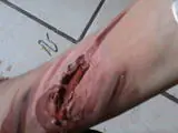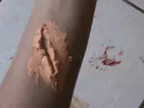 Posteriormente pintaremos los detalles de la herida, y los externos para darle más realismo, y listo, mi resultado final;