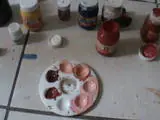 Una vez dada la forma a la herida, comenzamos a preparar las pinturas con los siguientes tonos;