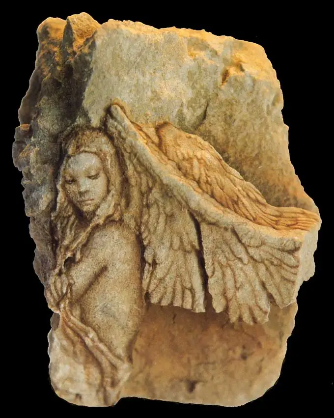 Ciruelo comenzó en 1995 con esta técnica que consiste en pintar directamente sobre piedras sin alterar su forma original, solo siguiendo los relieves de la superficie de la piedra.