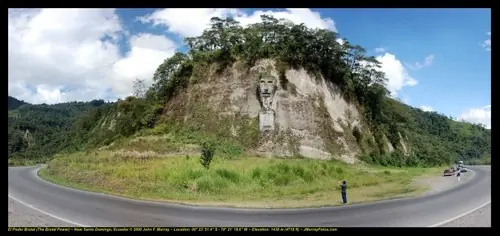 Fue esculpida entre 1985 y 1987, por César C. Octaviano Buenaño, tractorista empleado del Ministerio de Obras Públicas, el artista murió en 2001 a causa de leucemia. el artista apenas culminó la educación primaria y carecía de formación artística profesional, sin embargo se autoeducó toda su vida y con gran habilidad reunió varios millones de sucres (en ese tiempo la moneda de curso) y durante más de un año en su tiempo libre esculpió en la roca de la montaña "El poder brutal".
