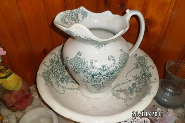 Antes de morir, me regaló lo único que le quedaba de su tierra natal: 4 pequeños vasos de cristal, un porrón de cerveza labrado a mano y su jarra y palangana donde la bañaba su madre.