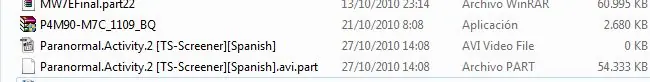 el archivo que nos interesa es abajo de la imagen el que termina algo asi ....avi.part ya que este es el archivo temporal de la descarga.