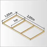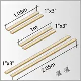 Conseguí unos listones de 3″ x 1″. Sólo tenés que cortar dos tramos de 2,05 m, dos de 1m y dos de 1.05m para los travesaños.