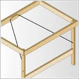 Calzá las patas en su lugar y uní con bulones para madera de 5/16″ x 2½” con arandela, tuerca y contratuerca.