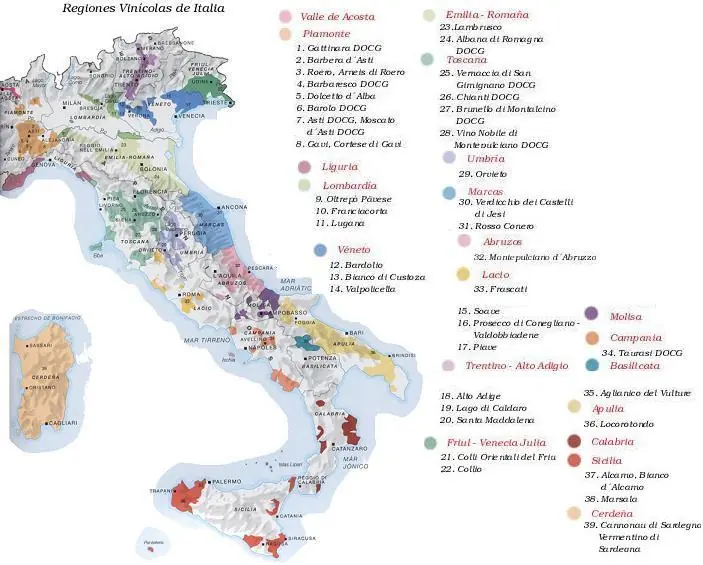 Las leyes del vino italianas se desarrollaron a partir del caos de los años cincuenta y, en 1963, el gobierno italiano instauró un sistema de denominazione di origine, o denominación de origen, basado de forma aproximada en el sistema francés de appellation contrôlée.