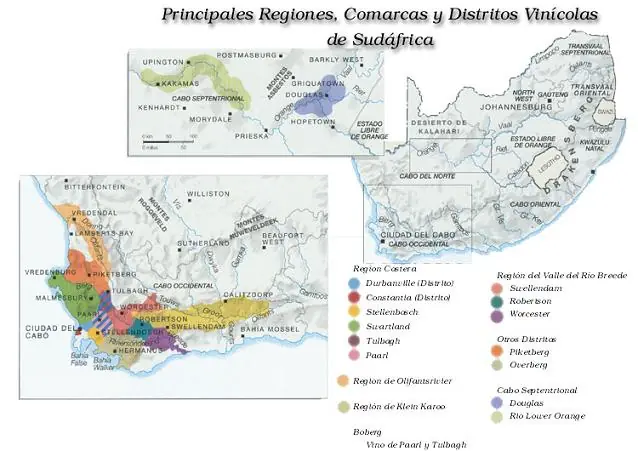 Al igual que muchos otros países vinícolas del Nuevo Mundo, las leyes sudafricanas sobre el etiquetado destacan la variedad de la uva antes que el origen del viñedo o el tipo de vino. Los vinos varietales se pueden elaborar con el 100 % de la uva especificada, y hasta un 25% de otras variedades. Para ser clasificado como bodega, el productor debe elaborar su vino con uvas cultivadas en su propiedad .