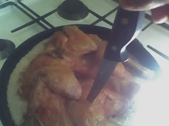 11º Para saber si está bien cocido probá cerca del muslo del pollo haciendo un tajito, si ves todo blanco está a punto.