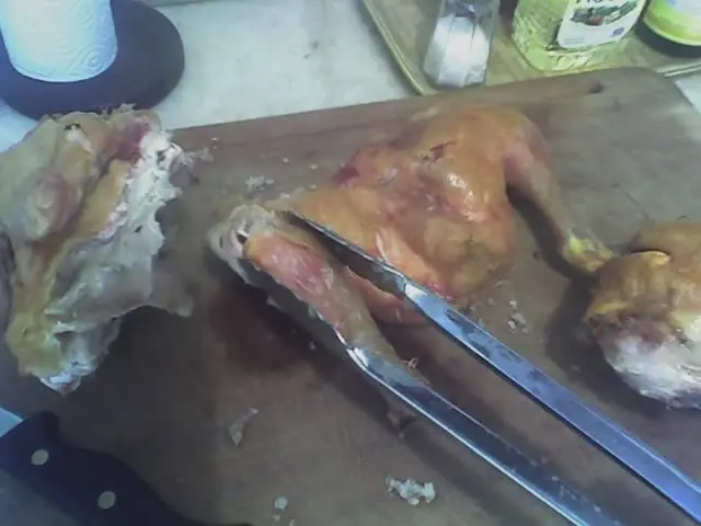 Cuchillo bien filoso, para abrir el pollo.
