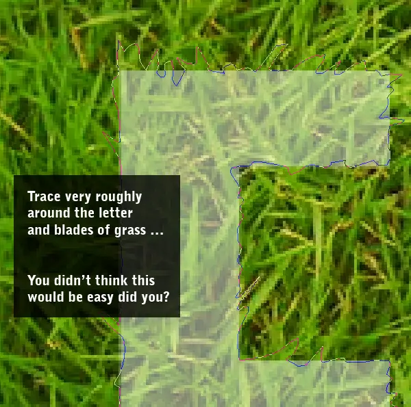 Ahora un poco de planificación! Para hacer que el texto de la hierba, no va a ser suficiente con la plantilla a la hierba. Más bien, necesitamos que se vea todos los áspera, con trozos de hierba que sobresale de los bordes. Para ello, vamos a utilizar la carta de formas como una guía aproximada y luego traza aproximadamente alrededor de ellos y periódicamente se proyectan trazar alrededor de briznas de hierba.