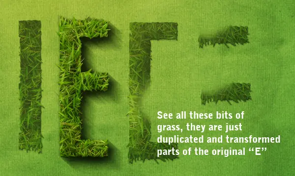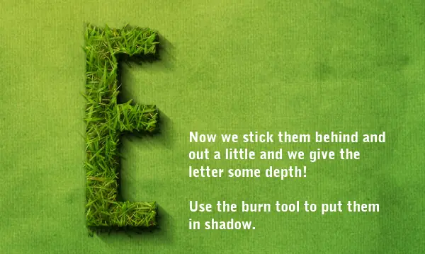 Así que este texto se ve bastante bien, pero para que poco más de profundidad hay que añadir algunos trozos de césped en el área de fondo / shadow. En lugar de cortar más hierba, sólo puede usar esta carta actual transformado sobre lo que no es obvio que lo vamos a cortar juntos.
