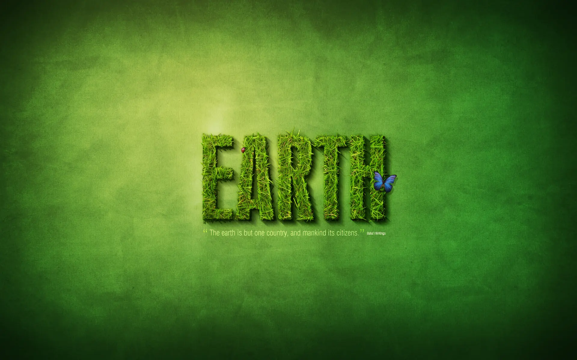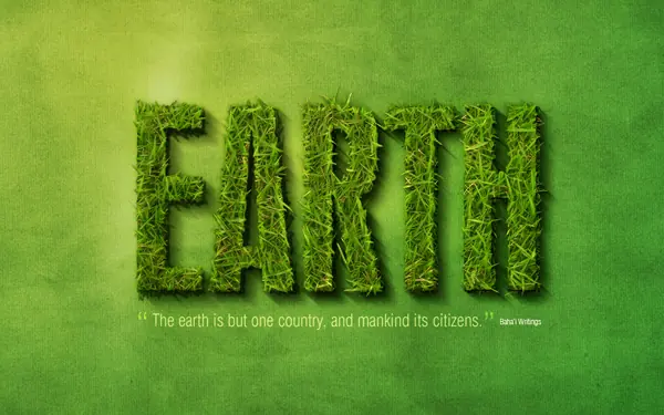 Así que por primera vez, vamos a añadir un texto adicional. Aquí he puesto una cita agradable sobre la tierra y la unidad tomada de la fe bahá'í (esa es mi religión!). Me encanta comillas, porque significa que conseguir tres piezas para decorar, la cita, las comillas y la fuente.