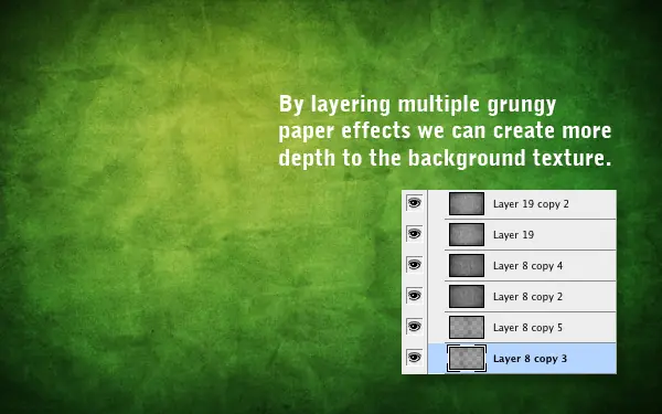 Ahora ponemos la capa de superposición y el 70% de opacidad para mezclar la textura con nuestro fondo verde agradable.