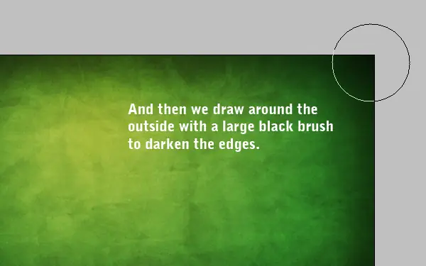 Ahora creamos una nueva capa sobre la parte superior y con un gran cepillo suave, negro, añadir un poco de negro a los bordes. Vale la pena tonificación de nuevo la opacidad a cerca de 30% y de superposición. A continuación, puede duplicar la capa y ejecutar un gran desenfoque gaussiano sobre él (conjunto a cerca de 32px). De esa manera suavizar los bordes realmente a cabo.
