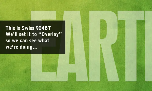 Lo siguiente que necesitamos algún tipo. Así que seleccione un tipo de letra que desea cortar con. Elegí 924BT Suiza, que es el tipo de grasa y condensada. Pensé que tenía buen aspecto y grandes. Y yo he escrito el texto "LA TIERRA". Eso es porque estoy haciendo cinco de estos fondos de pantalla-tierra, agua, fuego, aire, espíritu ... es como de dibujos animados que solía ver cuando era niño, el Capitán Planeta!