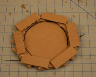 *En el circulo que tienes como base iras pegando uno a uno los trozitos de cartón ya cortados .