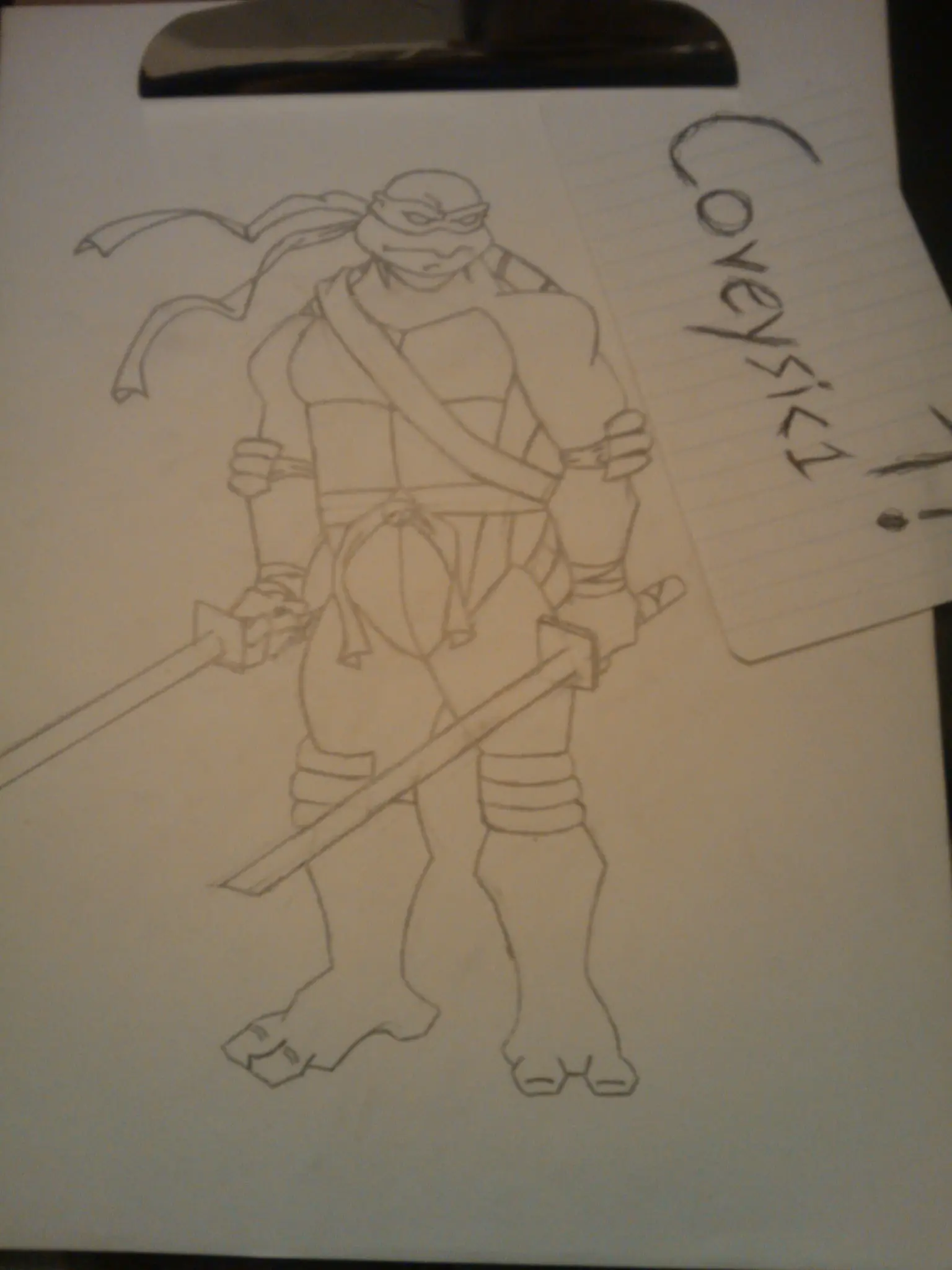 Hola amigos y conocidos de Taringa!, hoy les quiero mostrar el ultimo dibujo que hice a lapiz y luego digitalizado de Leonardo el de Teenage Mutant Ninja Turtles. Aqui esta el dibujo a lapiz: